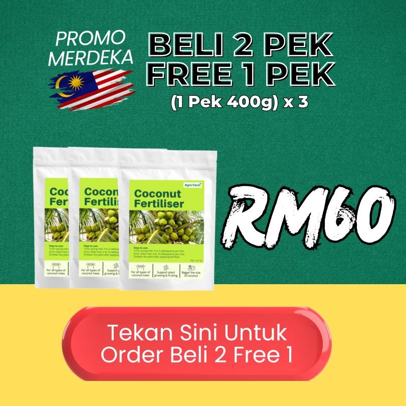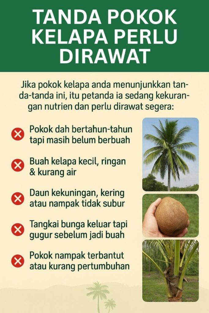 Formula KHAS untuk bantu pokok kelapa:✅ Cepat berbuah✅ Buah besar, air banyak✅ Daun lebih hijau & subur✅ Pokok sihat & tahan penyakit